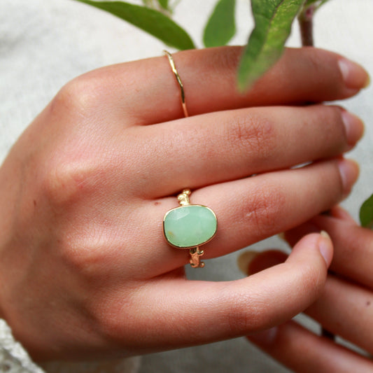 VerkochtLentekroon ring goud Chrysopraas